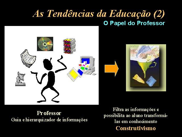 Dessa forma, a figura do professor deverá ser aquela de um orientador, para que o próprio aluno aprenda a buscar os conhecimentos necessários. Esta é a base do construtivismo. Mais importante do que fornecer informação objetiva, é despertar no aluno o interesse e a habilidade de identificar os problemas e buscar as soluções, utilizando-se das mais variadas ferramentas de aprendizado disponíveis. Assim, teremos um profissional capaz de se adequar às constantes e inexoráveis mudanças em sua realidade profissional (F.H. Mendes).