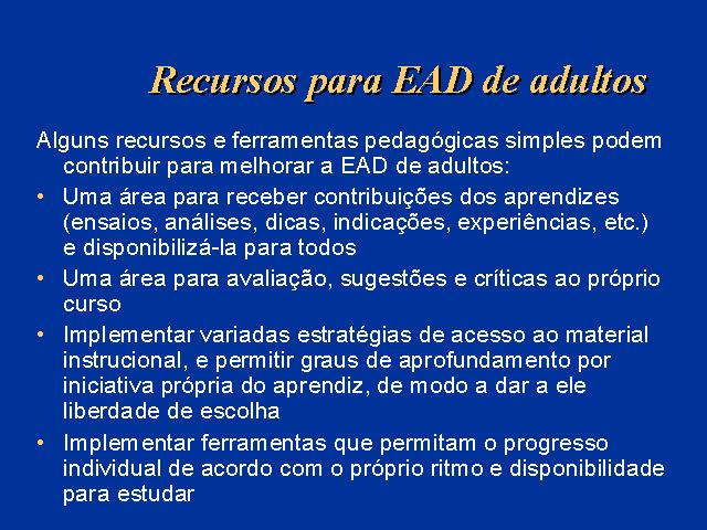 Algumas dicas simples permitem operacionalizar os recursos e ferramentas pedagógicas que favorecem o aprendizado de adultos. As palavras chave são: participação, colaboração, autonomia, progresso individualizado, liberdade de escolha.