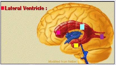 Identifique as partes do ventrículo lateral de acordo com as cores quadriculadas