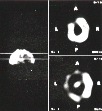 várias imagens cintigráficas ao redor do eixo. Essas imagens eram então combinadas para produzir
