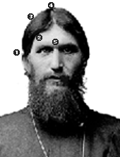 A wide ear axis (1) stands for a strong dynamic energy (Destructiveness), which also is reflected in a strong vital energy. The tragical circumstances of Rasputin's death illustrate this: after resisting a strong dose of poison, he was shot several times by Prince Yussupov before being slain.