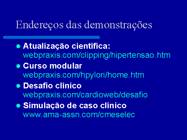 Aqui você encontra os endereços na Web das demonstrações que fizemos nos slides anteriores.
